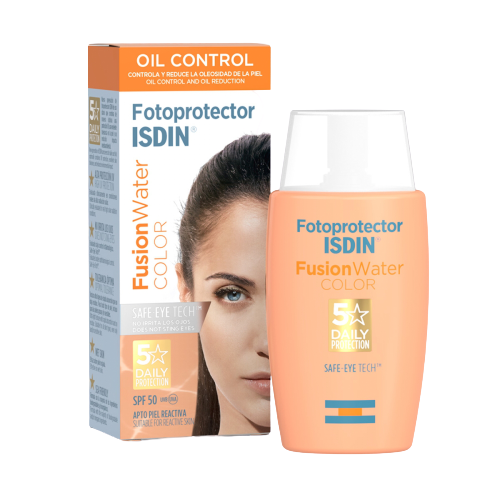 Fotoprotector facial de fase acuosa con color de uso diario. Textura ultraligera de cobertura natural que disimula imperfecciones.